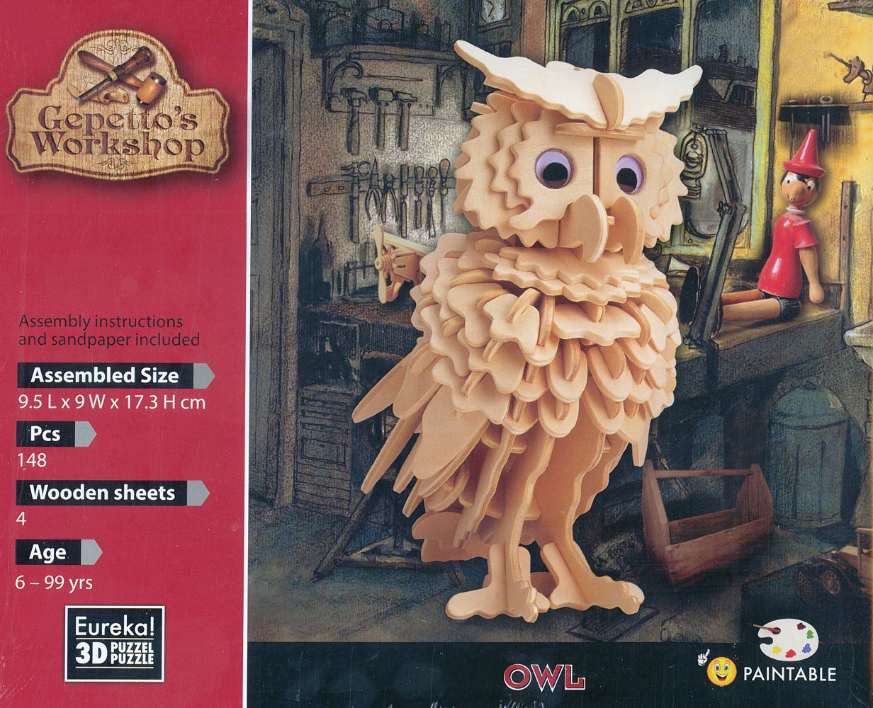 Gespettos Owl, 3D Konstruktionspuzzle aus Holz.