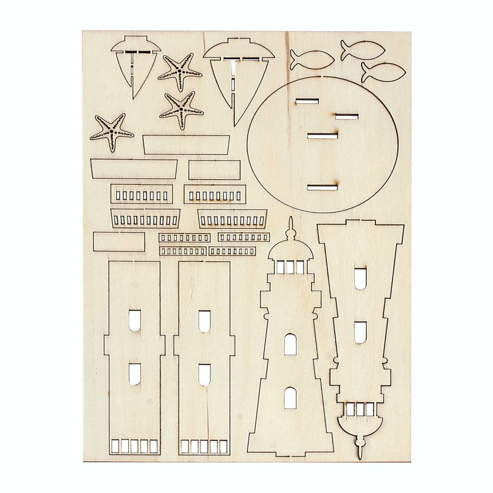 Der Holzbausatz Leuchtturm bringt die Vorfreude auf den Sommerurlaub mit. Leuchtturm, Segelboote, Seesterne, Fische Strand und Meer...