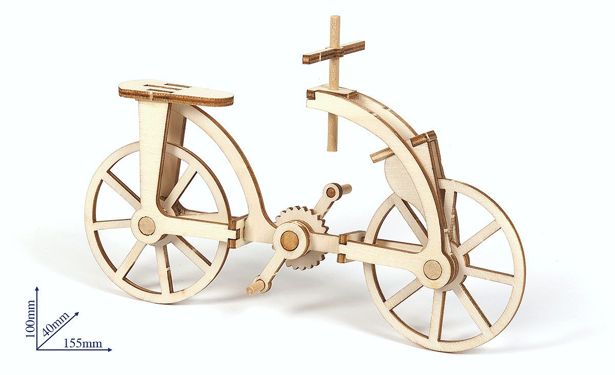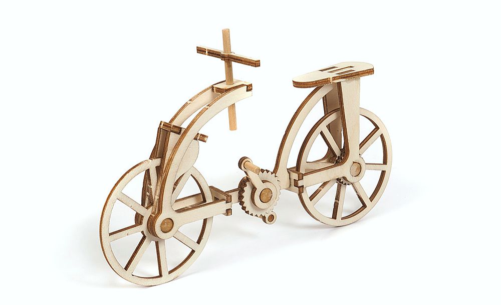 Holzbausatz, Modellbausatz mit vier Maschinen nach Leonardo Da Vinci, 4er Set, lasercut vorgefertigt