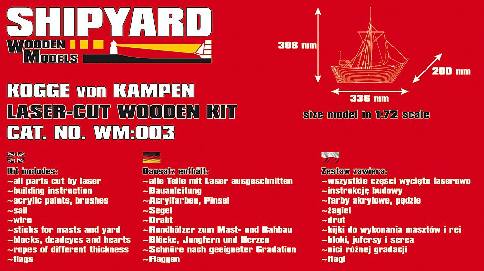 Schiffbausatz Kogge von Kampen 1336, Holzbausatz lasercut