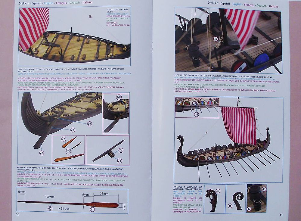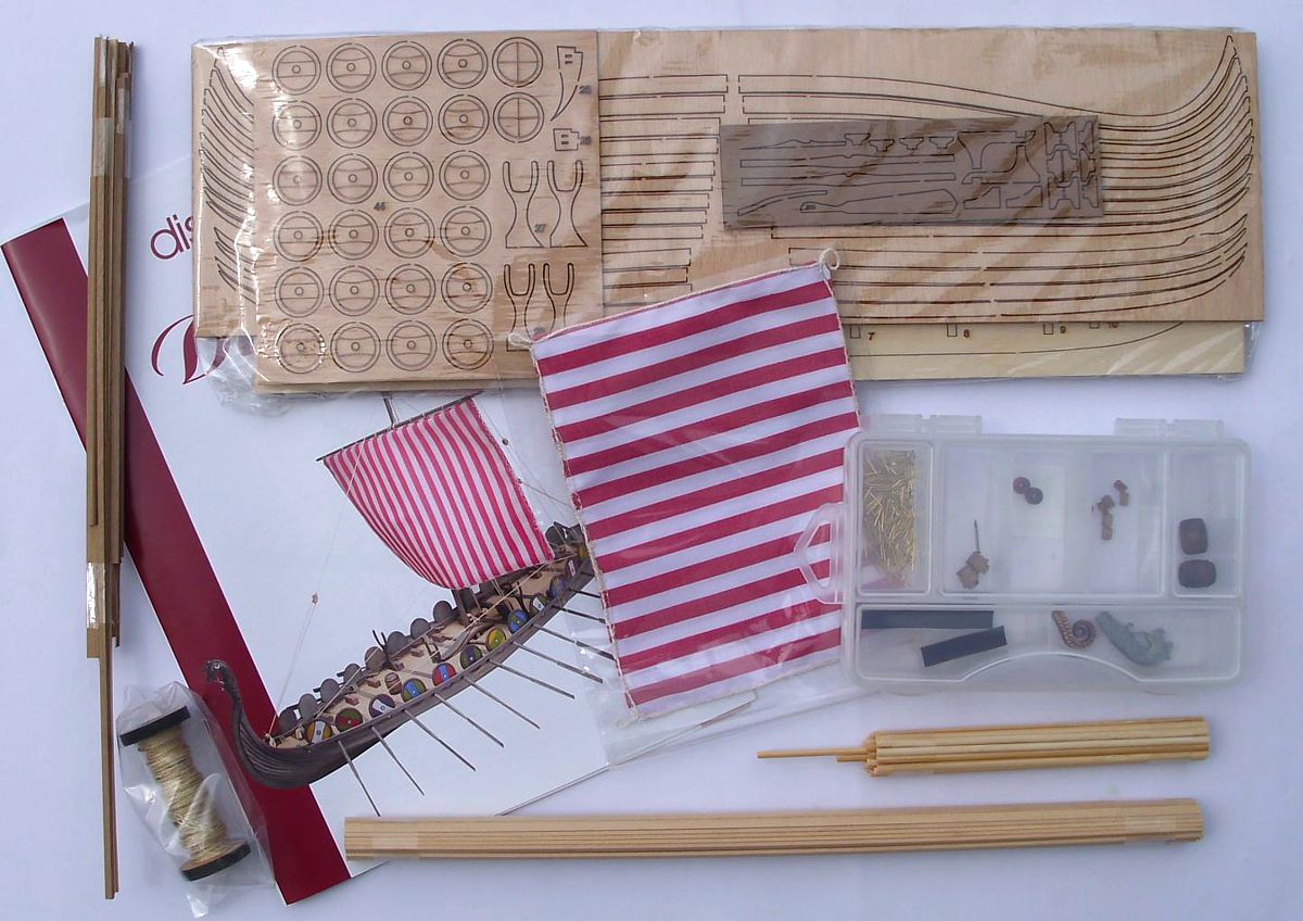 Das Wikingerschiff wird in traditioneller Spantenbausweise gebaut, der Baukasten enthällt allle Teile zur Fertigstellung, außer Leim und Farben. Die detaillierte "Schritt für Schritt"Bauanleitung ist in Heftform auf 15 Seiten verfasst und mit vielen Farbfotos und Stückliste ausgestaltet.