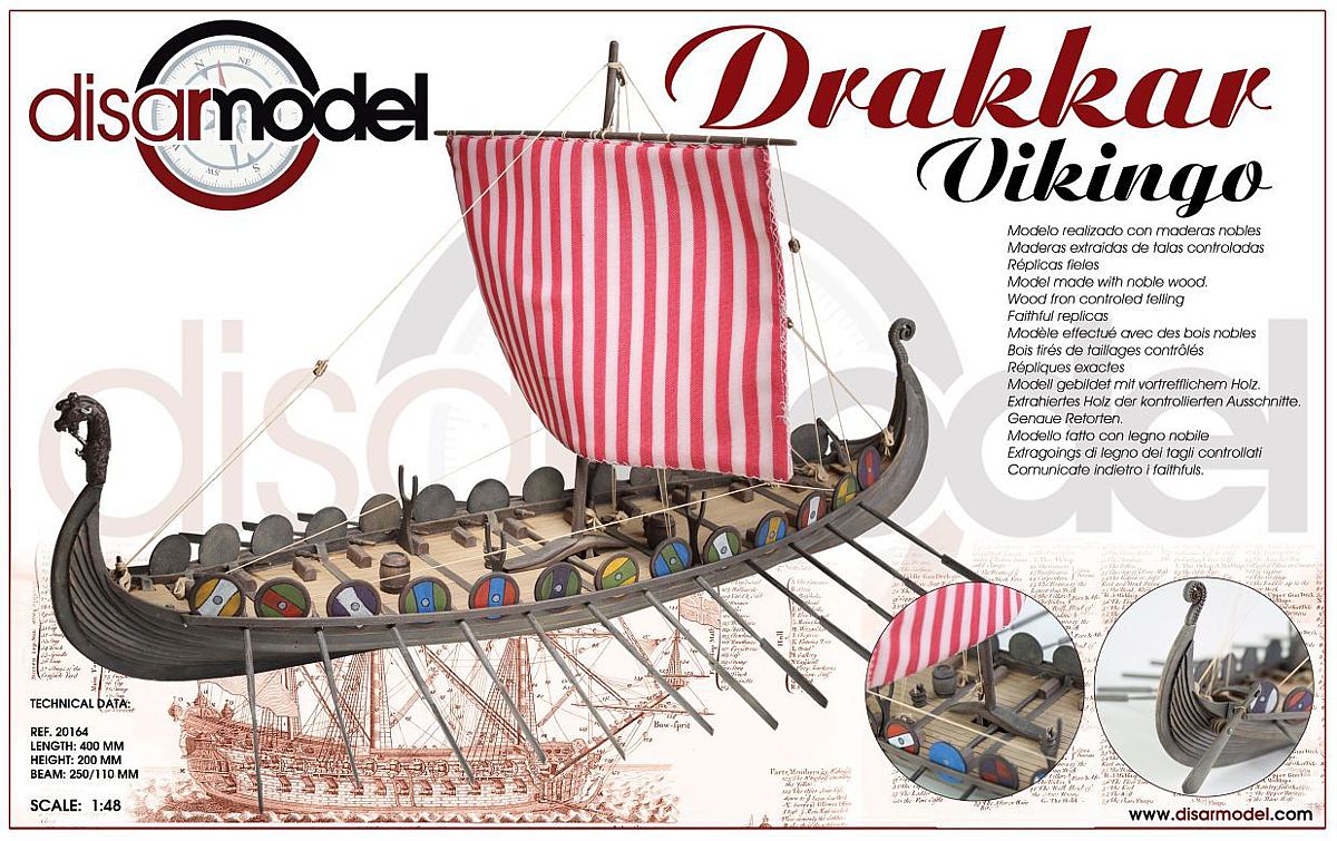 Schiffmodellbausatz Wikingerschiff Drakkaer Vikingo. Ein Drachenschiff als Standmodell von Disarmodel.