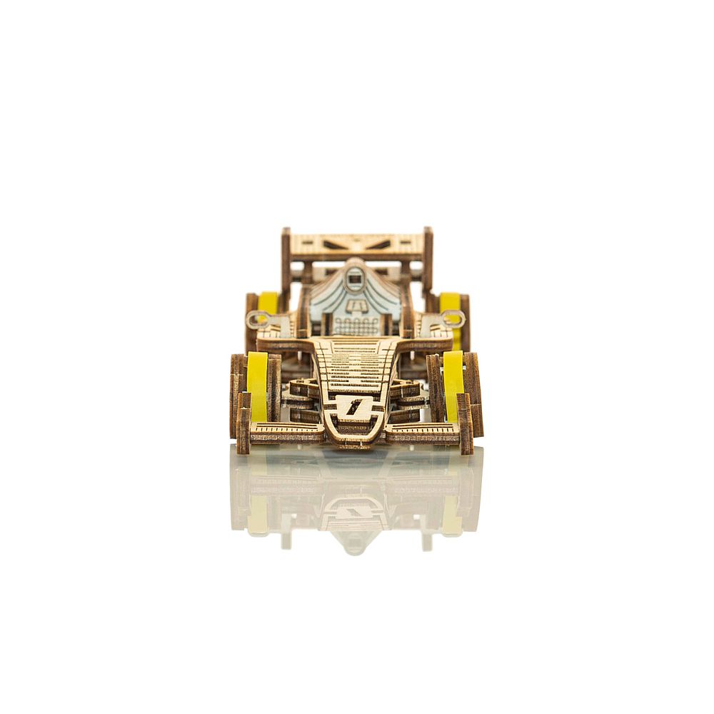 Mechanischer 3D Rennwagen - Holzbausatz von Wooden City, passgenau aus Birkensperrholz per Laser geschnitten. Der Zusammenbau erfolgt ohne Werkzeug und Klebstoff. Alle Bauteile werden der Anleitung folgend zusammengesteckt. Die Besonderheit der Holzbausätze von Wooden City ist die mechanische Funktion der Modelle.