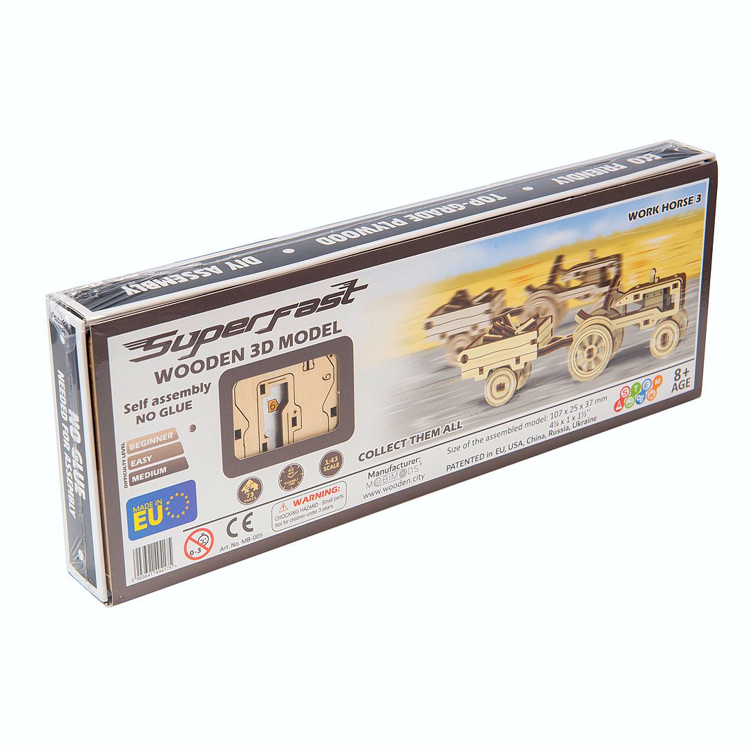 - WOODEN CITY Superfast 3D-Holzfunktionsbausatz Work Horse 3 Classic Tractor + Trailer